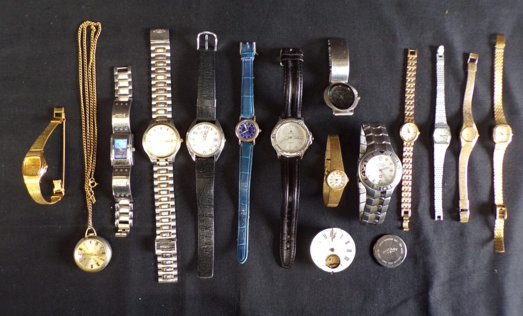 Collection of watches to include: Swiss Military by Chrono, Times and Citizen Please note descriptions are not condition reports, please request additional information/photographs and be sure before you bid. We do not provide a shipping or packing service, either Mailboxes on 00 44 1892 510155 (tunbridgewells@centres.mbe.uk) or Jentel Packing on 00 44 1268 776777 (enquiries@jentelpacking.co.uk) will be able to assist you. Payment is via bank transfer or in person with cash, credit/debit card. We do not take payment over the telephone. Storage charges will apply to items not collected within our terms. |